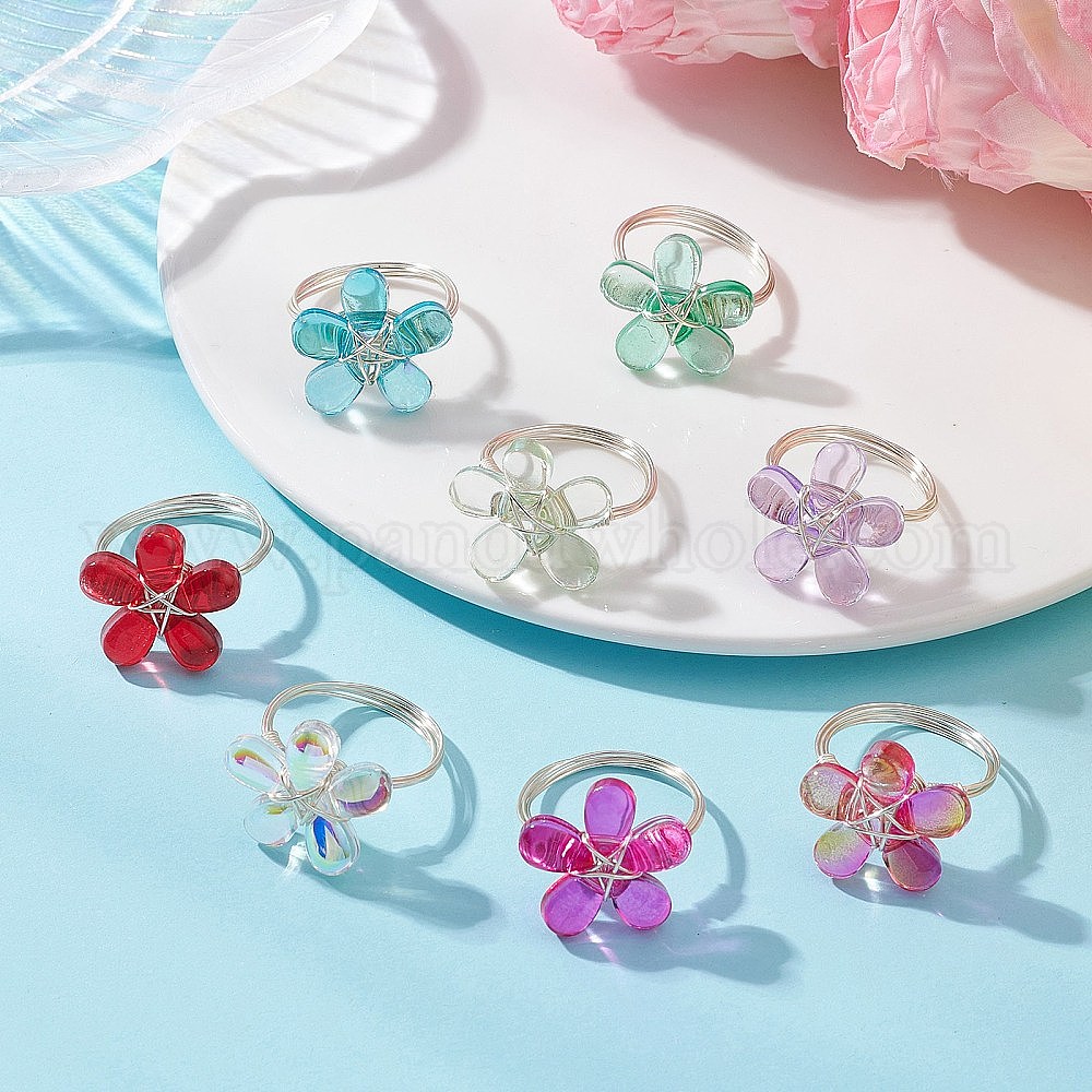 8шт. 8 цвета, экологически чистые кольца на палец из прозрачного стекла, обмотанного медной проволокой, цветок