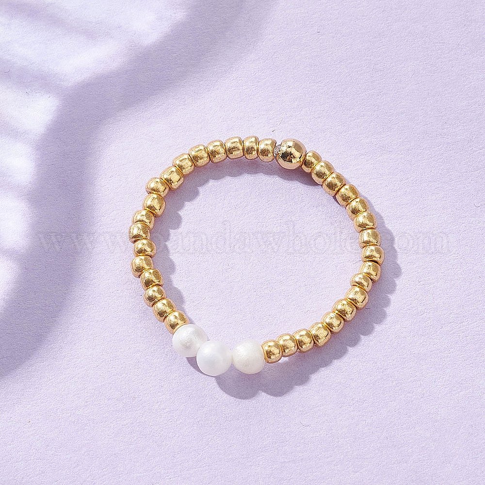 Кольца на палец из натурального культивированного пресноводного жемчуга и стеклянных бусин., стрейч-кольца