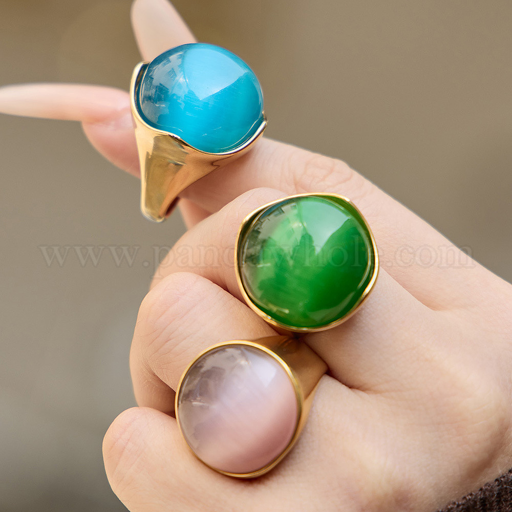 304 Кольца из нержавеющей стали с эффектом «кошачьих глаз» для женщин, золотые