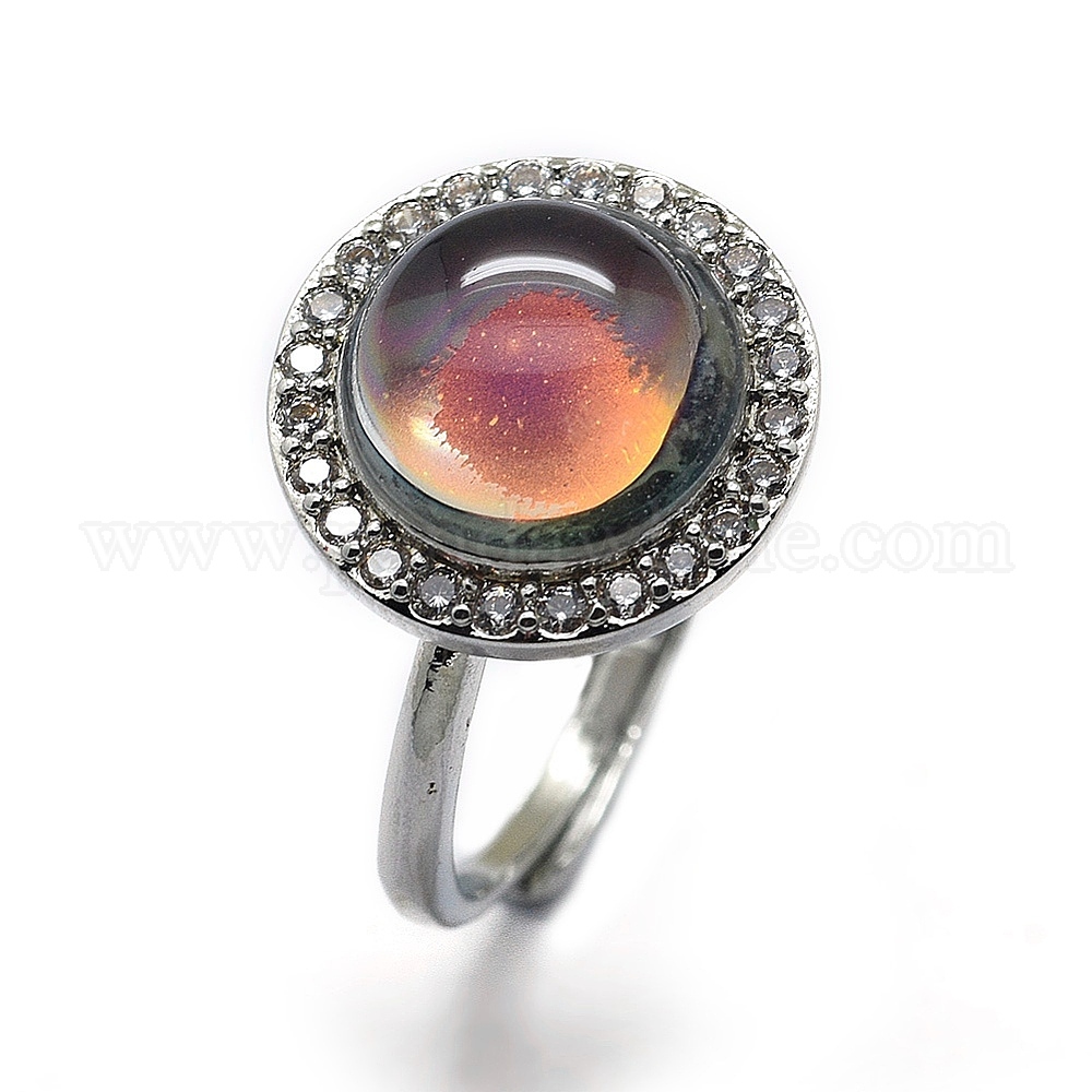 Латунные микро проложить манжеты кольца кубического циркония, открытые кольца, с изменяющимся цветом стекла настроения, плоско-круглые