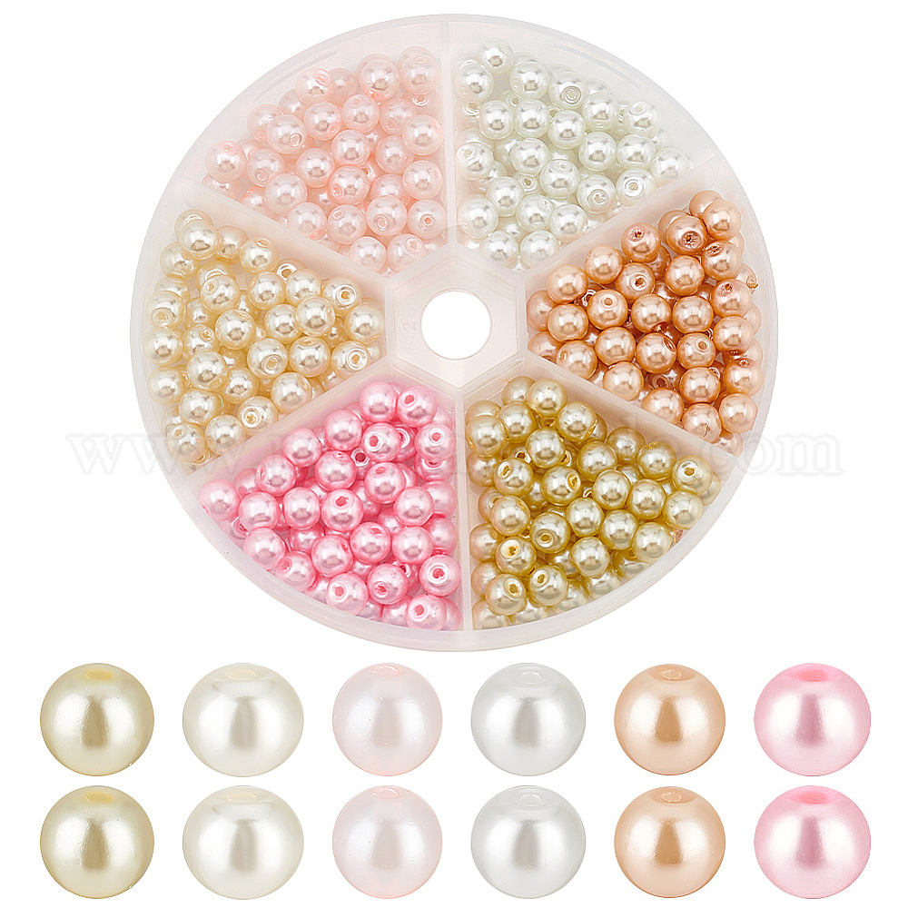 300шт 6 цвета стеклянные жемчужные бусины, жемчужные, круглые