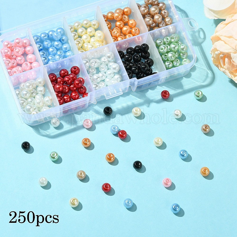 250шт 10 цвета выпечки окрашены перламутровые стеклянные жемчужные круглые бусины