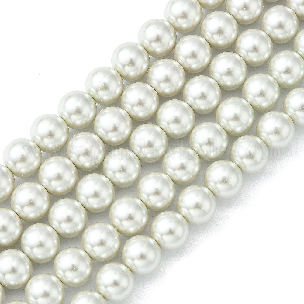 • Белый Круглые бусины из экологически чистого окрашенного стекла с жемчугом, хлопковый шнур , белые, 10 мм, отверстие : 0.7~1.1 мм, около 42 шт / нитка, 15 дюйм