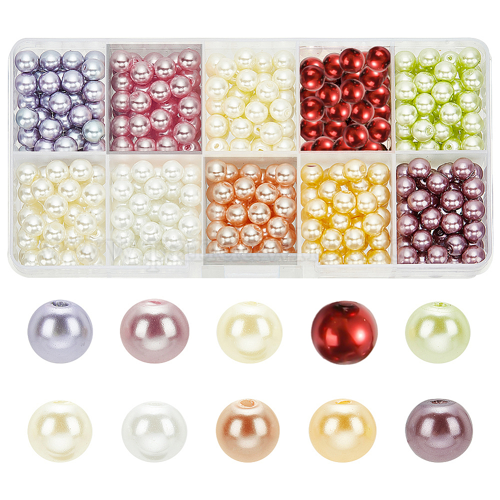 10 цветные экологически чистые круглые стеклянные жемчужные бусины с жемчугом., окрашенные (00MEFZ)