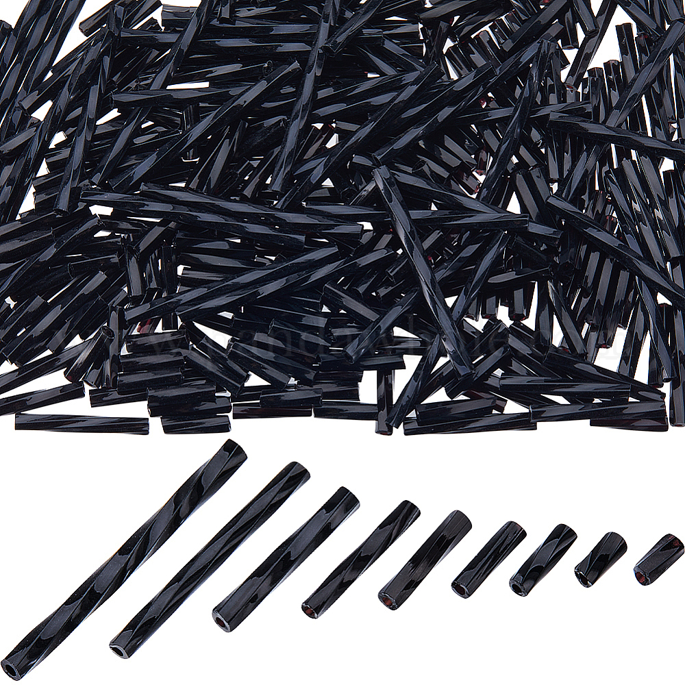 • Черный 1800шт 9 стиль стеклянные витые стеклярусные бусины, чёрные, 4.5~26x2 мм, отверстие : 0.5~1 мм, 200 шт / стиль
