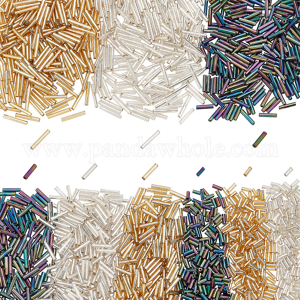 стеклянные бусины: около 12x2 мм, отверстие : 0.5 мм, 3 цветов, о 222шт / цвет, 666шт;