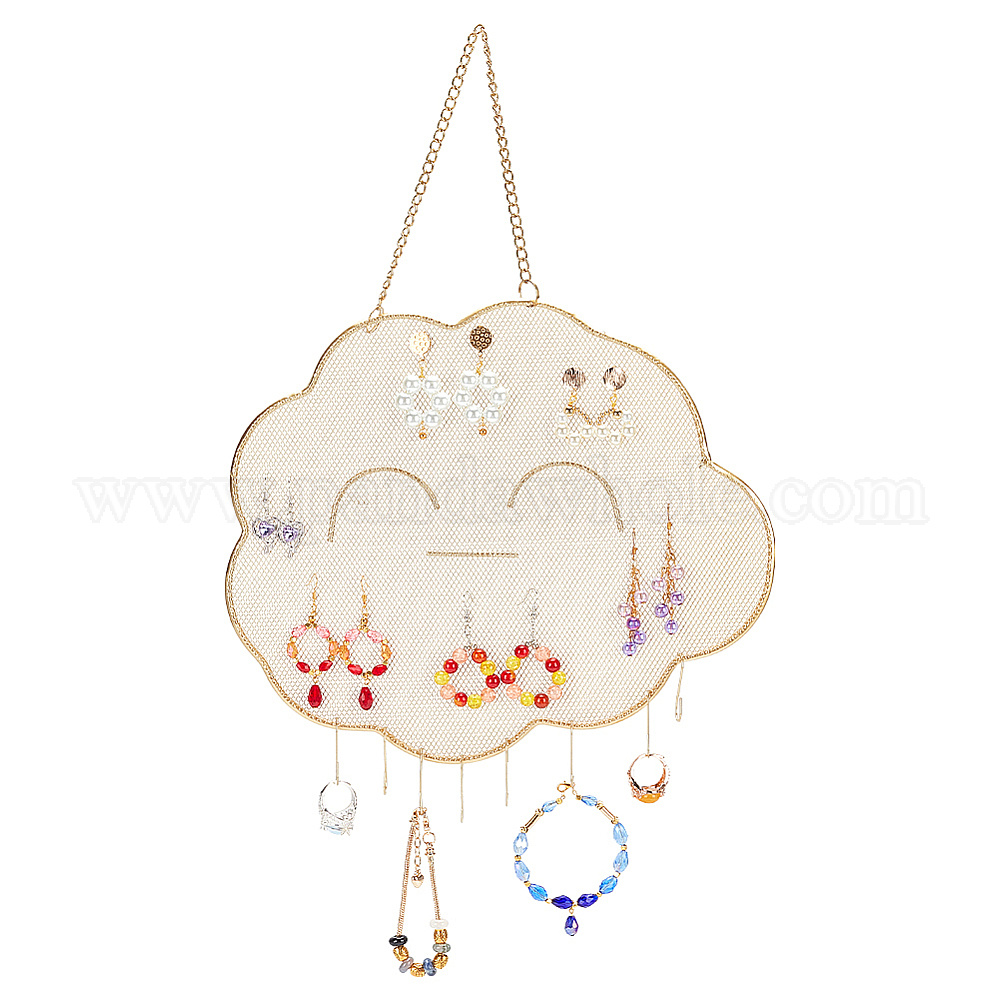 Настенная решетчатая стойка для ювелирных изделий в виде железного облака, настенная декоративная сетка для вешалки для украшений, для сережек, , дисплей колец, с крючками 10шт.