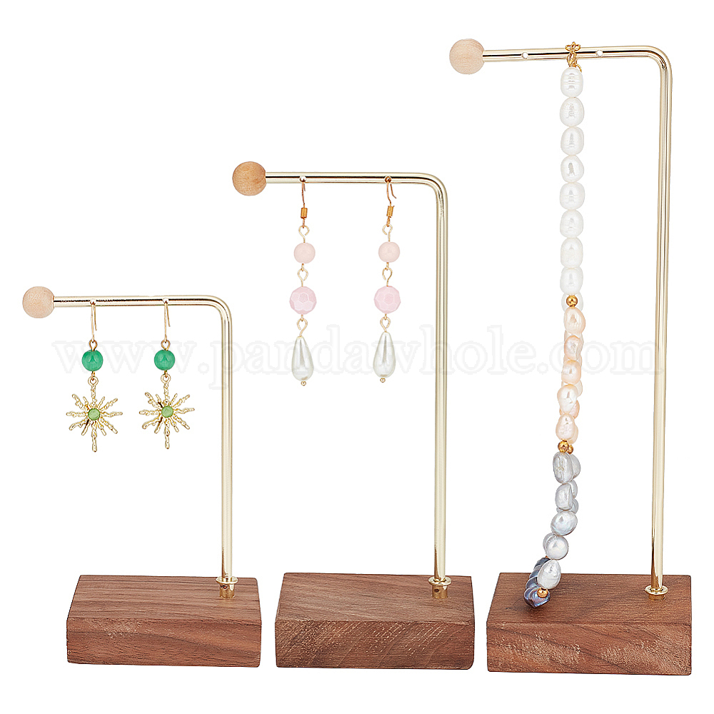 • Золотой 3шт. 3 размеры подставки для ювелирных изделий из сплава с деревянной основой, для сережек браслетов ожерелий дисплей, золотые, 1.2x7.4x12.8~20.8 см, 1 шт / размер
