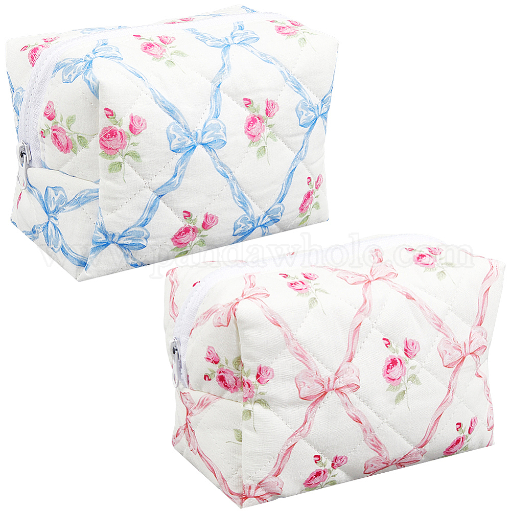 2 шт 2 цвета цветочный принт косметичка из хлопка и полиэстера на молнии, женские дорожные сумки большой вместимости