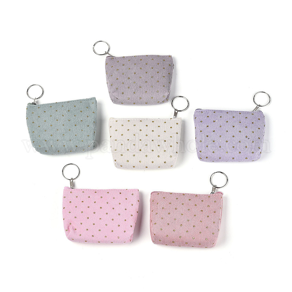 Вельветовые кошельки в горошек, кошелек для мелочи, Прямоугольный ключ с застежкой-молнией и железными брелоками, платина