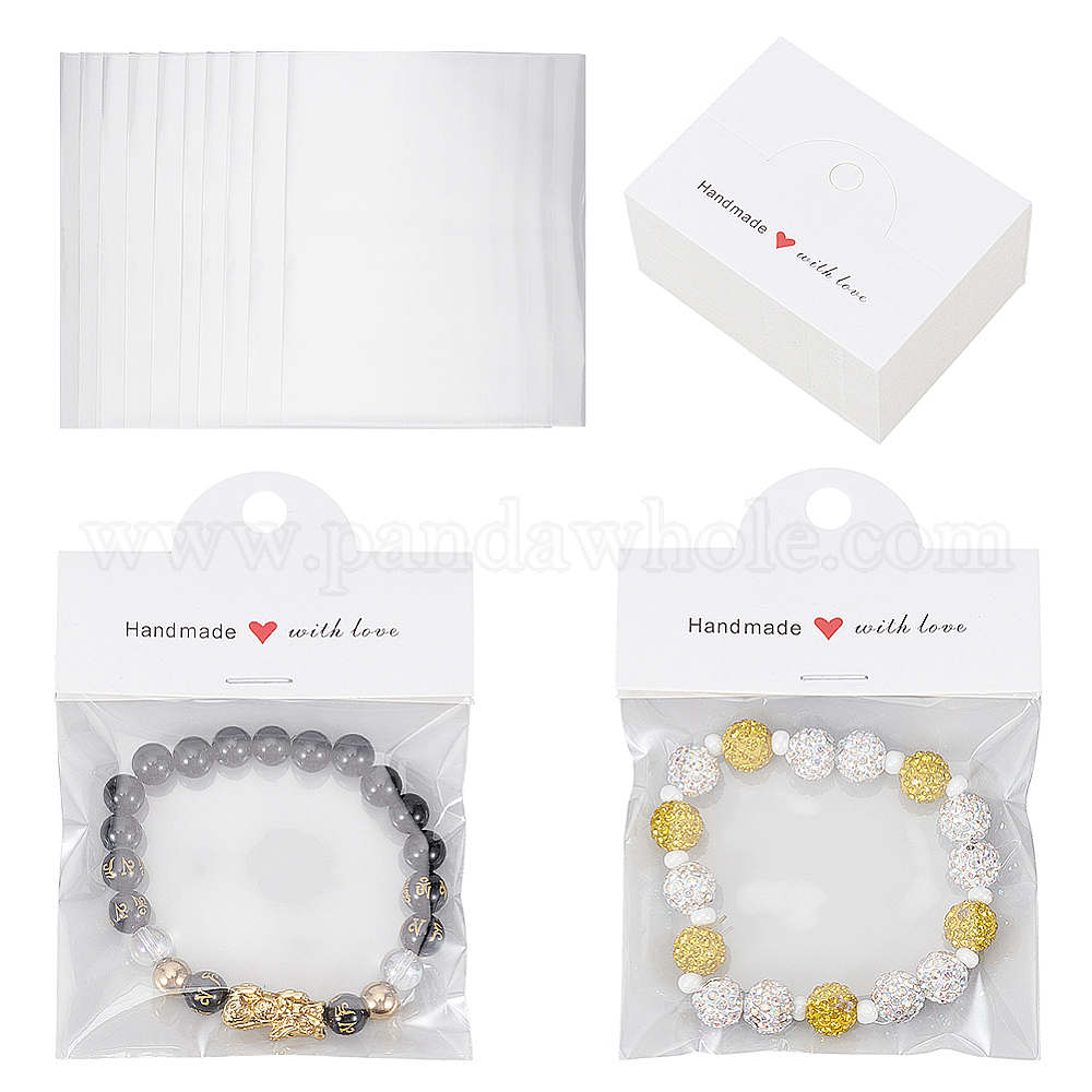 300шт. 0полипропиленовые целлофановые упаковочные пакеты с белым картонным заголовком, прямоугольные