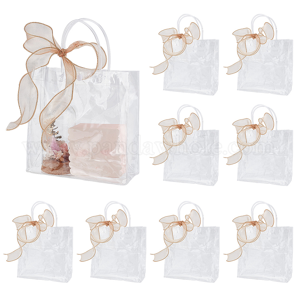 День святого Валентина 50шт. прямоугольные прозрачные ПВХ-пакеты для хранения с ручкой, сумки для хранения подарков, с 1 рулонными лентами из полиэфирной органзы