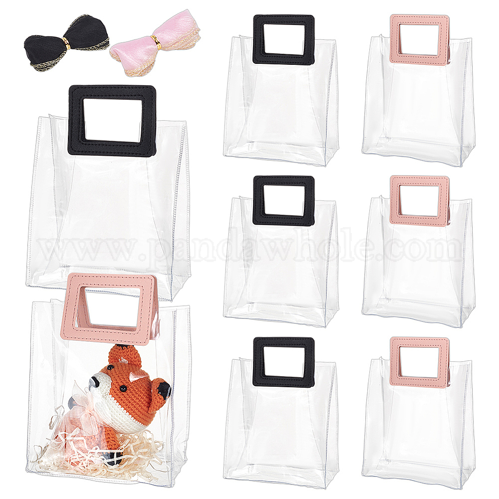12шт 2цвета ПВХ подарочные пакеты, с ручкой, прозрачные свадебные сумки для конфет, прямоугольные, с 2 пучками 2 цветов полиэфирной шифоновой лентой (02QHHY)