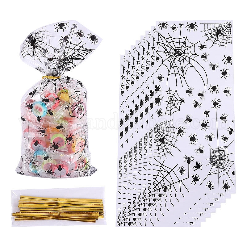 Хэллоуин паутина с принтом подарочных пластиковых пакетов, прямоугольные пакеты для упаковки конфет (02TSQ8)