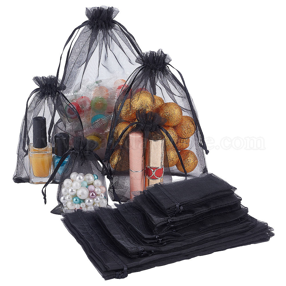 • Черный 100шт 20 стиль сумки из органзы мешочки для хранения ювелирных изделий свадебные сувениры вечерние сетки шнурок подарок, чёрные, 9~23x7~17 см, 20 шт / стиль