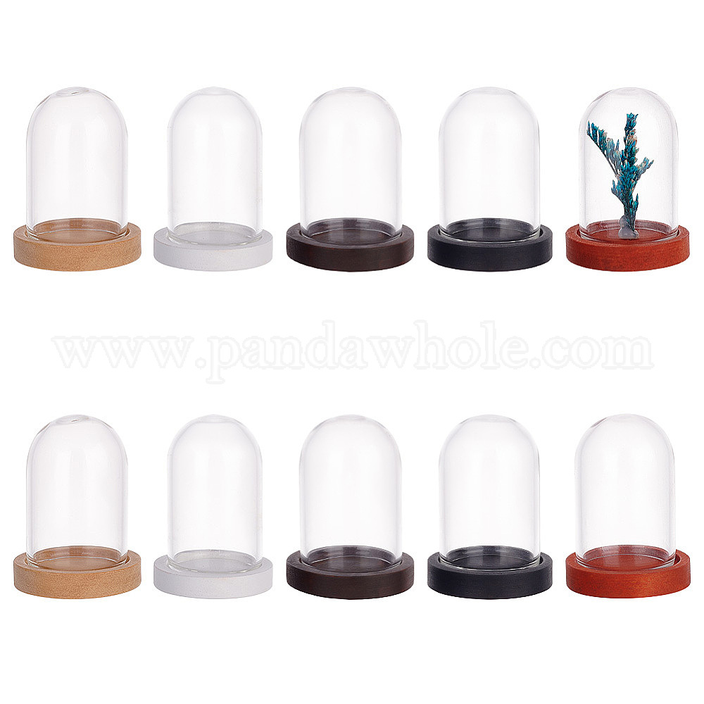 10шт. мини стеклянные купола, с 10шт 5 цвета плоские круглые оправы из натурального дерева кабошон, для банок-колоколов