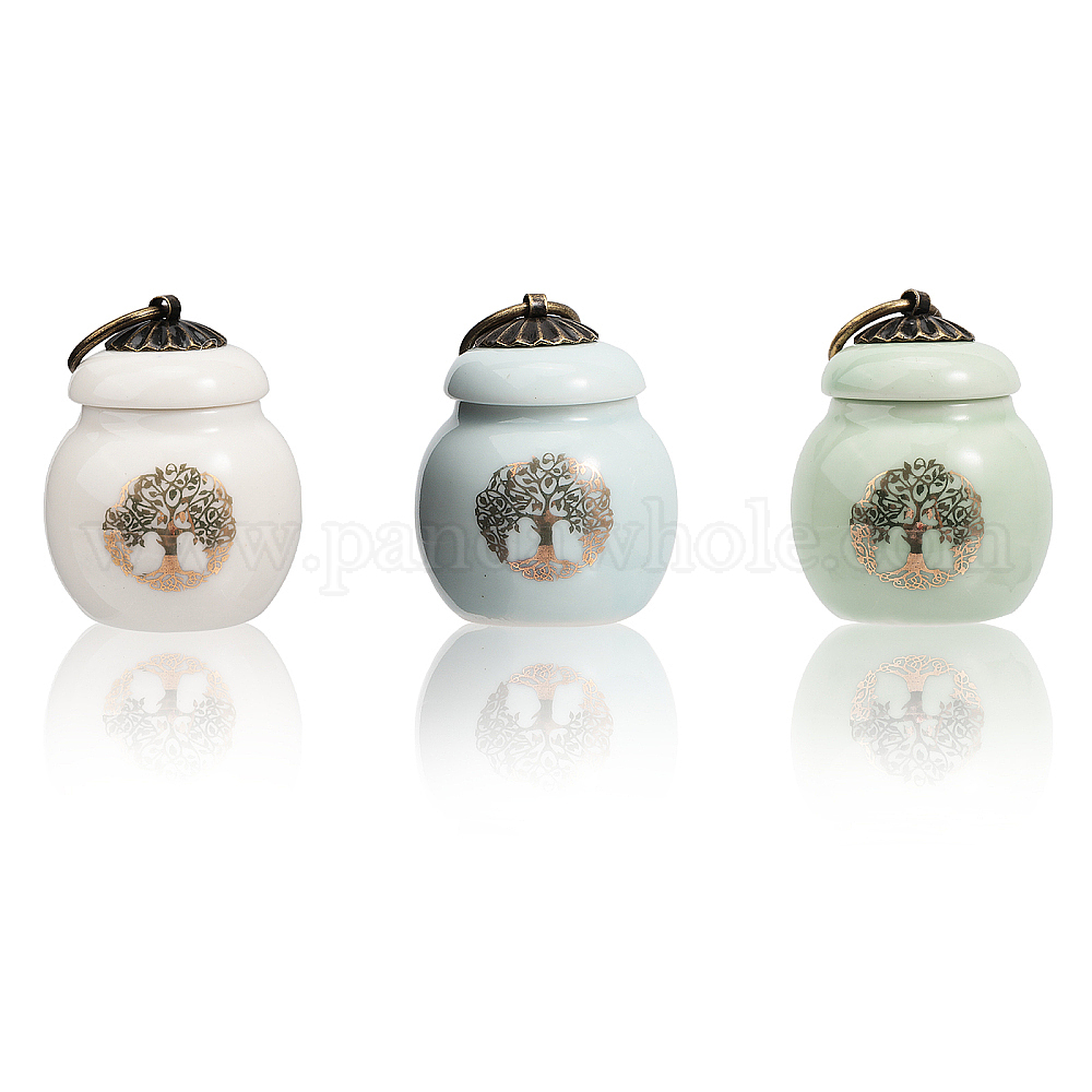 фарфоровые контейнеры для хранения с рисунком дерева жизни: около 6.6 см в высоту, подвеска для бутылки: 49x40мм, внутренний диаметр: 20 мм, Кольцо: 19x2 mm, внутренний диаметр: 15 мм, емкость: 15 мл (0.51 жидких унций), 3 цветов, 1 шт / цвет, 3 шт.