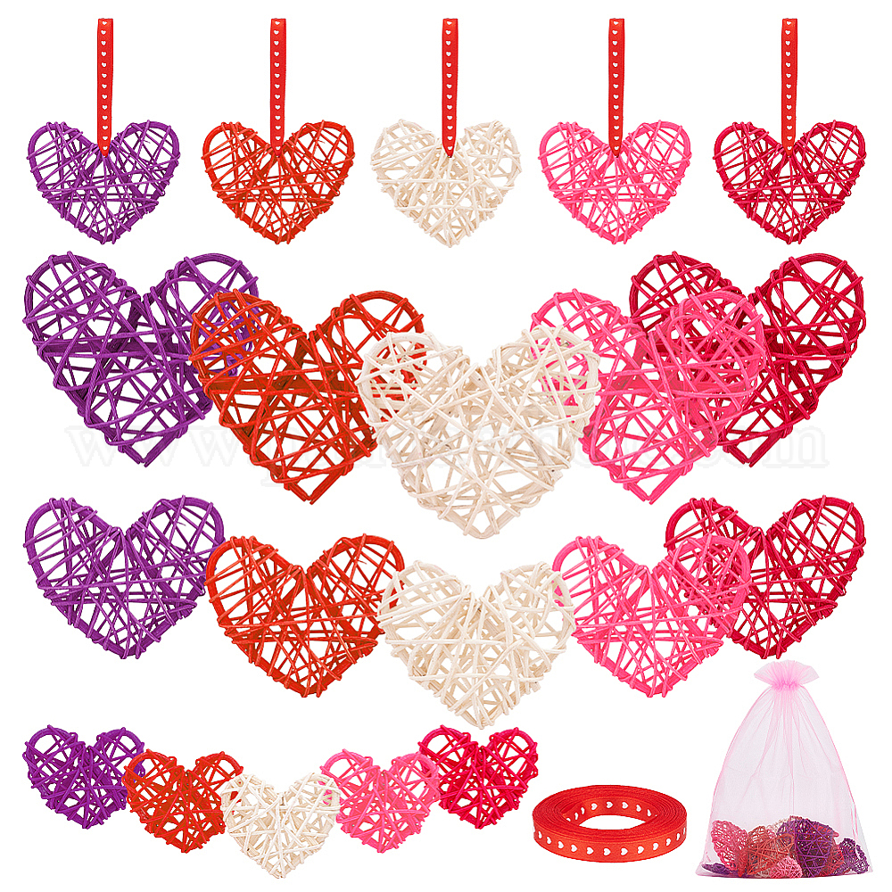 20шт 15 стили сердце ротанговые шары, с 2 подарочными пакетами из органзы и атласной лентой длиной 10 ярдов, украшение рождественской елки украшение свадьбы дня рожденияукрашение вечеринки