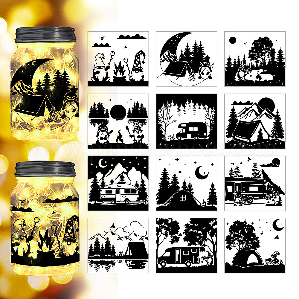 • Другие ПВХ силуэтная бумага, для светового оформления, световой короб вырезанный из бумаги, прямоугольные, цветочный, 90x100 мм, 12 шт / комплект