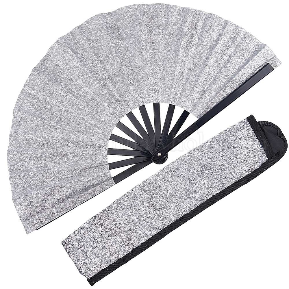 • Серый Веер из блестящего пластика и ткани Оксфорд с чехлами для вееров, для партии, танцевальное украшение, серые, 343x57x31.5 мм