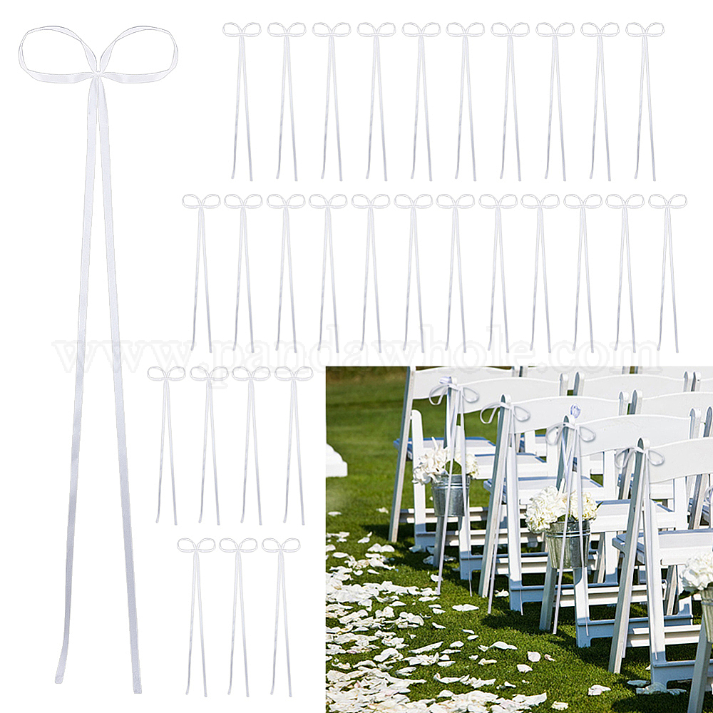 • Белый 30 шт. односторонний атласный полиэстеровый бант, аксессуары для украшения стула, белые, 800x250 мм