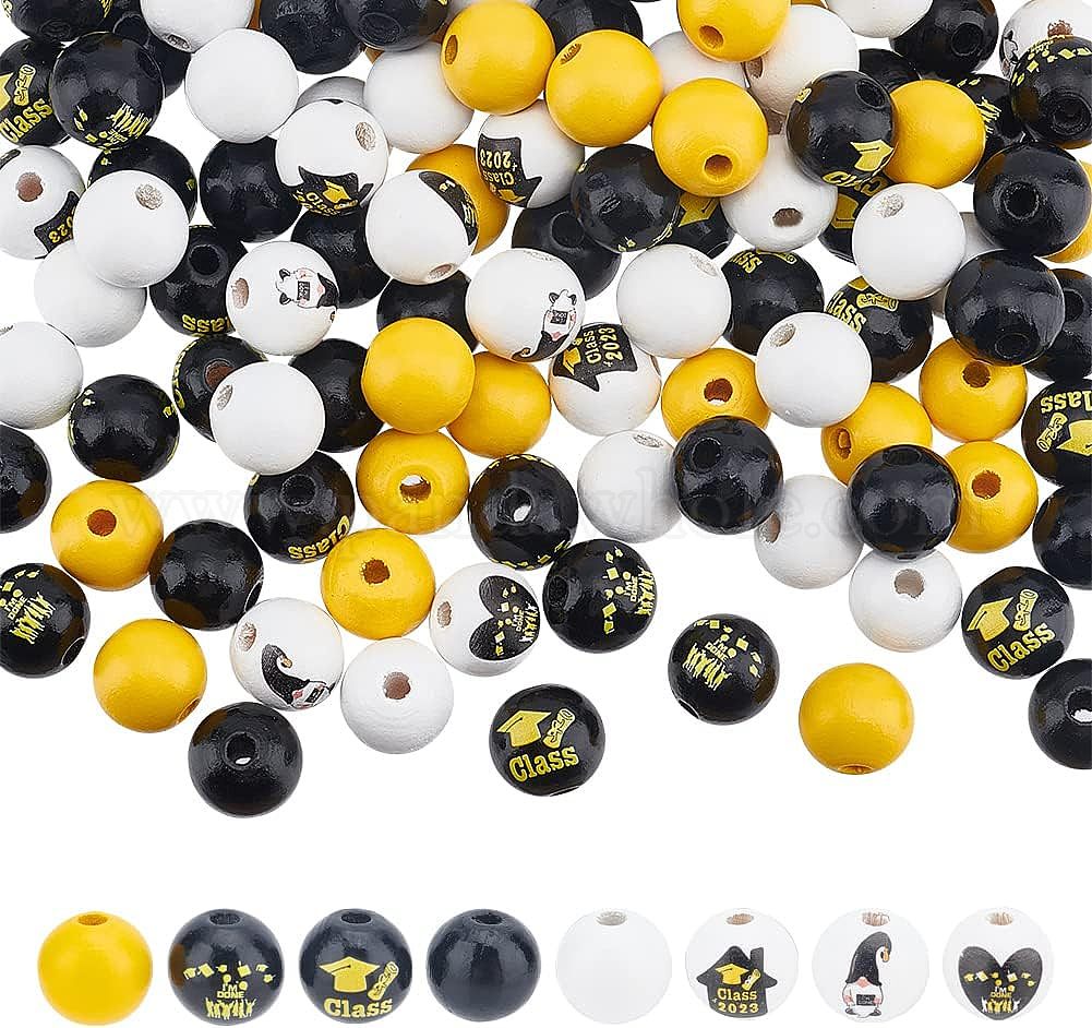 120 шт 8 стили тема выпускного года напечатанные деревянные бусины, разноцветные, круглая с шляпой, гномом и выпускными шапками