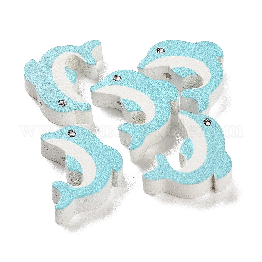 • Светло-Синий Бусины из натурального клена, окрашенные распылением, дельфин, голубой, 17x19.5x6 мм, отверстие : 2 мм