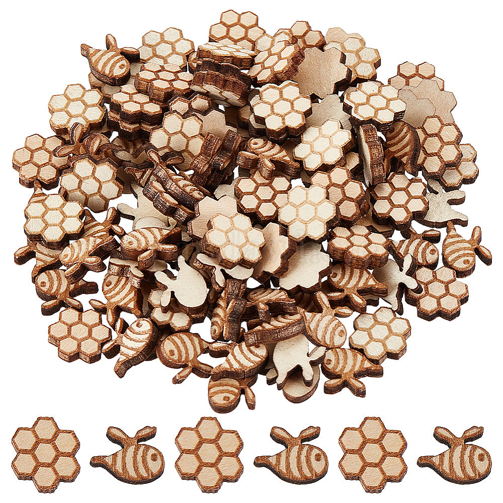 120шт 2 стили лазерная гравировка деревянные бусины, окрашенные, пчелы и соты