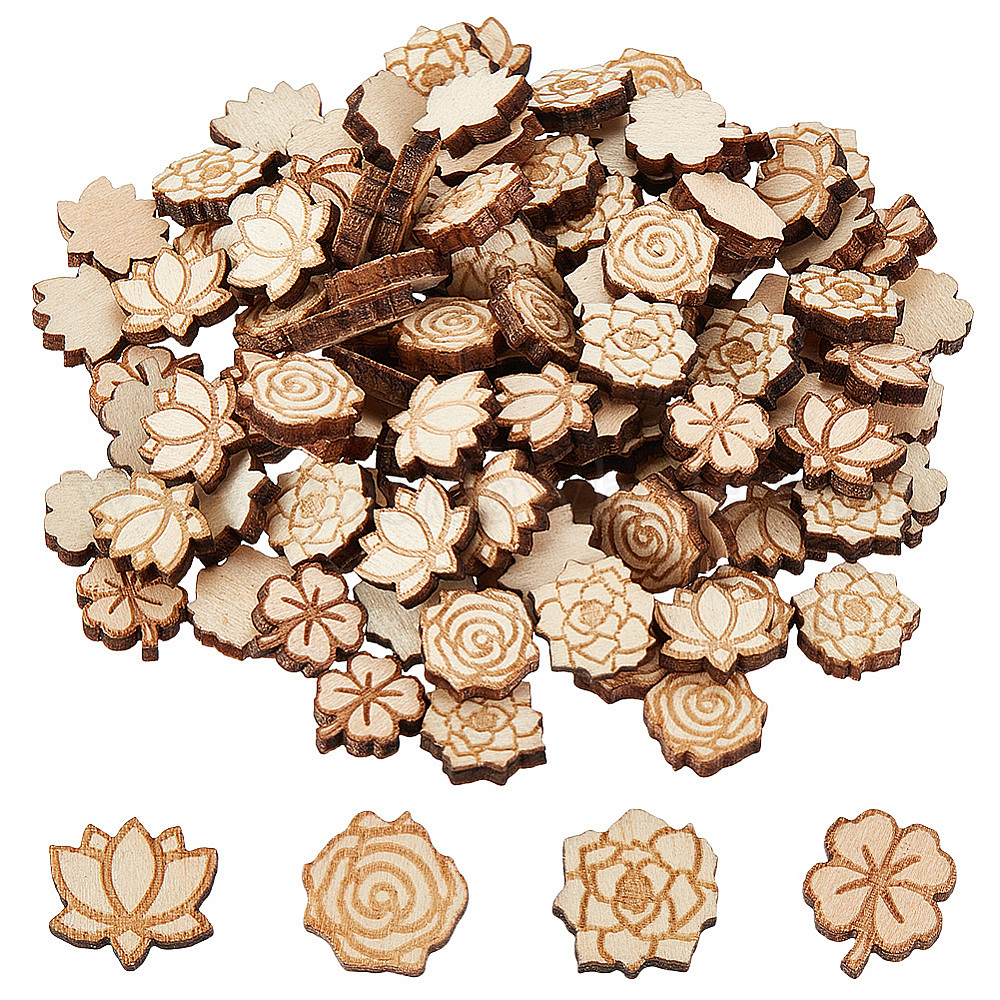 120шт 4 стили лазерная гравировка деревянные бусины, окрашенные, цветок розы