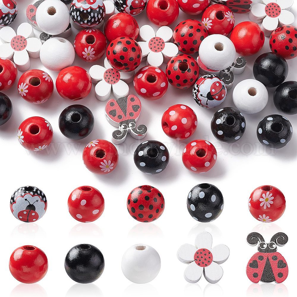 50 шт. 10 стили деревянные бусины с принтом в виде божьей коровки, деревянные весенние бусины