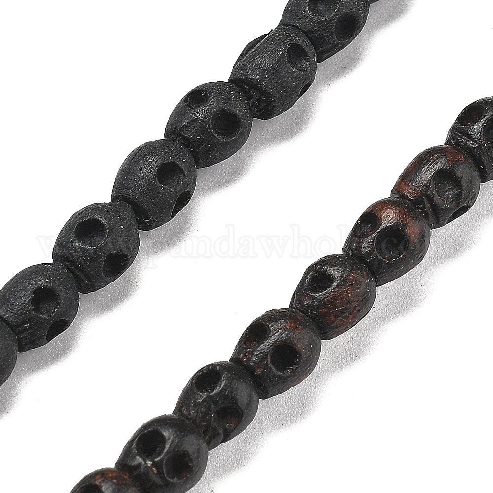 • Черный Нити резных деревянных бусин, череп, чёрные, 5.5~6x5~5.5x5~5.5 мм, отверстие : 1.6 мм, около 75 шт / нитка, 18.11'' (46 см)