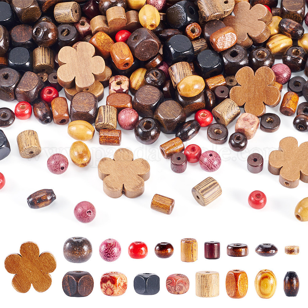 360шт 18 стили деревянные бусины, разнообразные