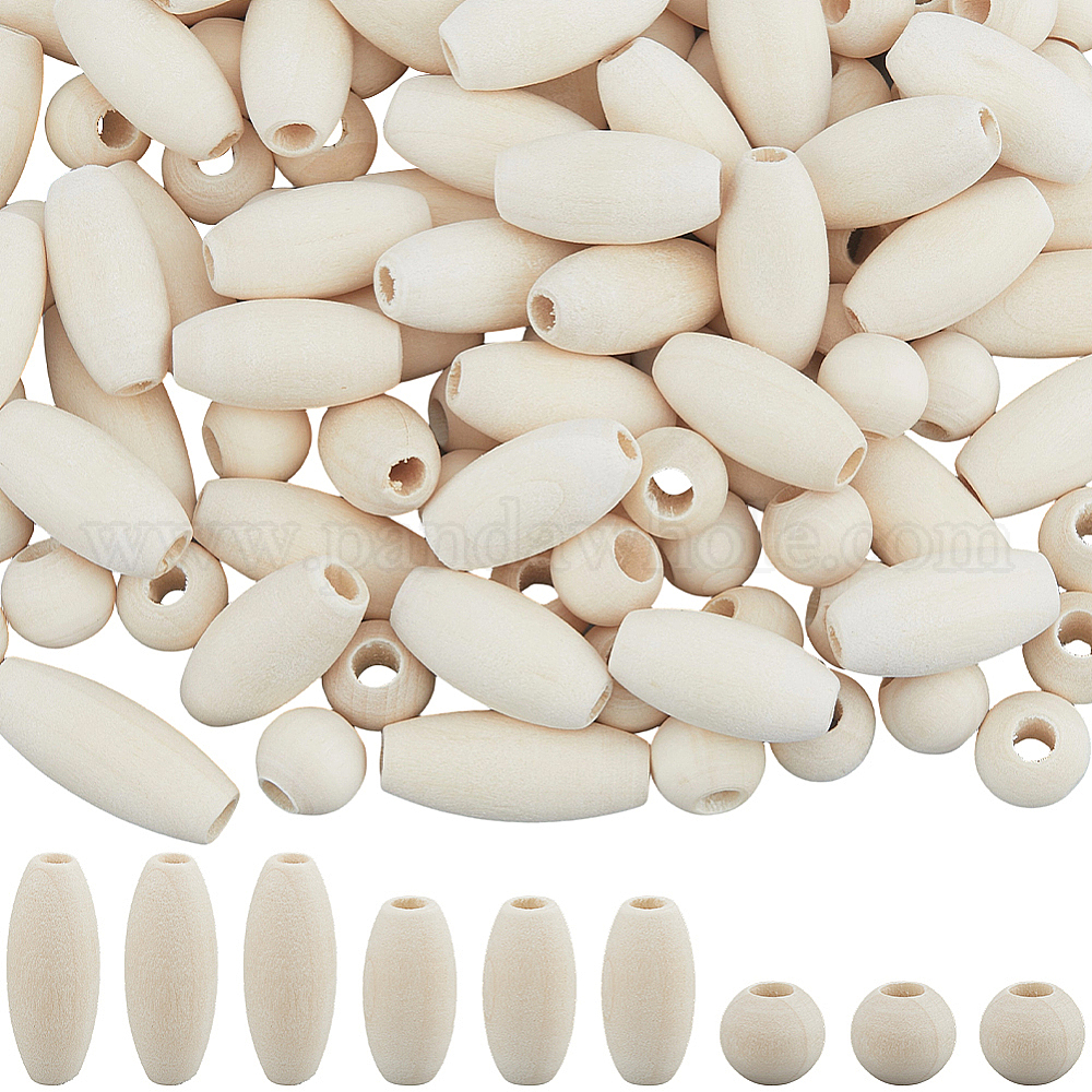 300шт 3 стиль натуральные необработанные деревянные бусины, бусины макраме, круглые и овальные деревянные бусины с большим отверстием для рукоделия