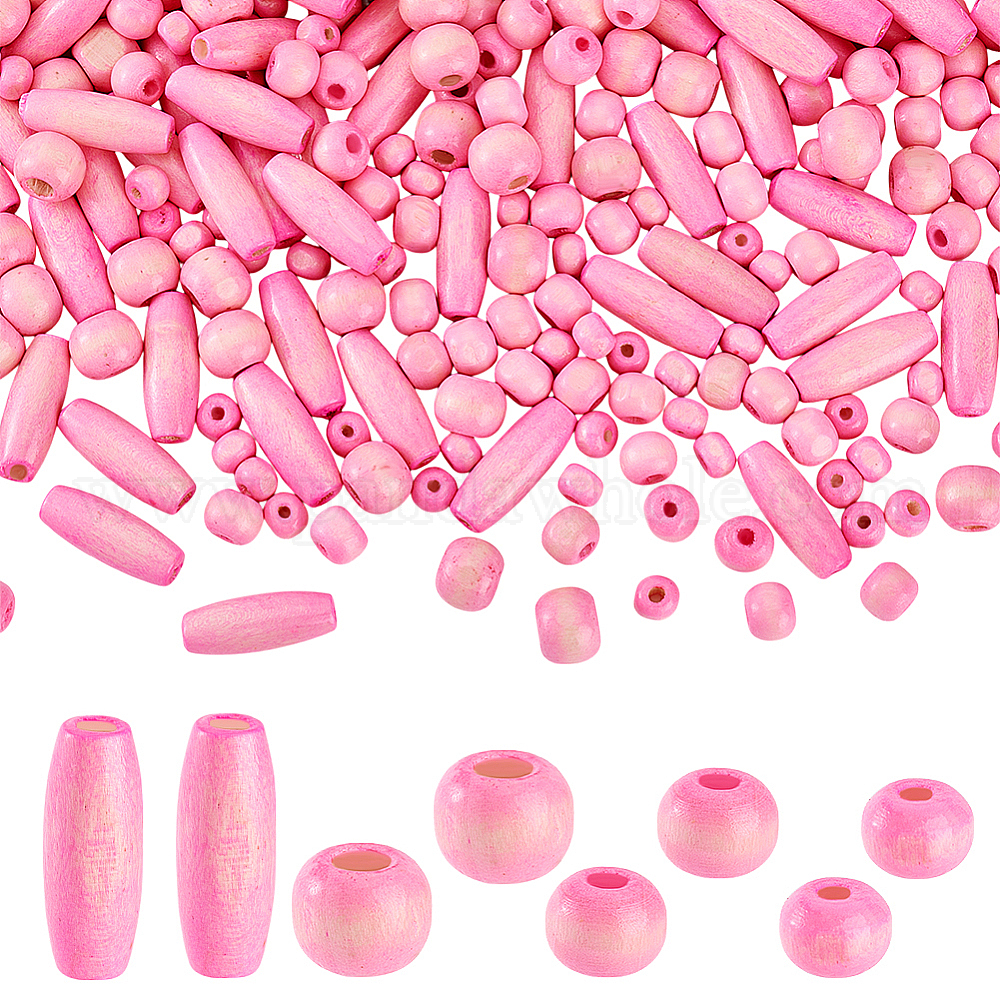 480шт 4 стили окрашенные бусины из натурального дерева, круглые
