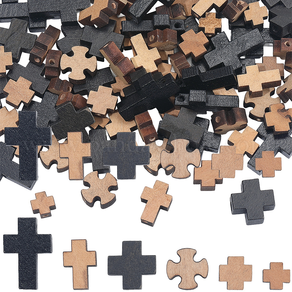 120 шт 6 стили натуральных деревянных бусин, крестик