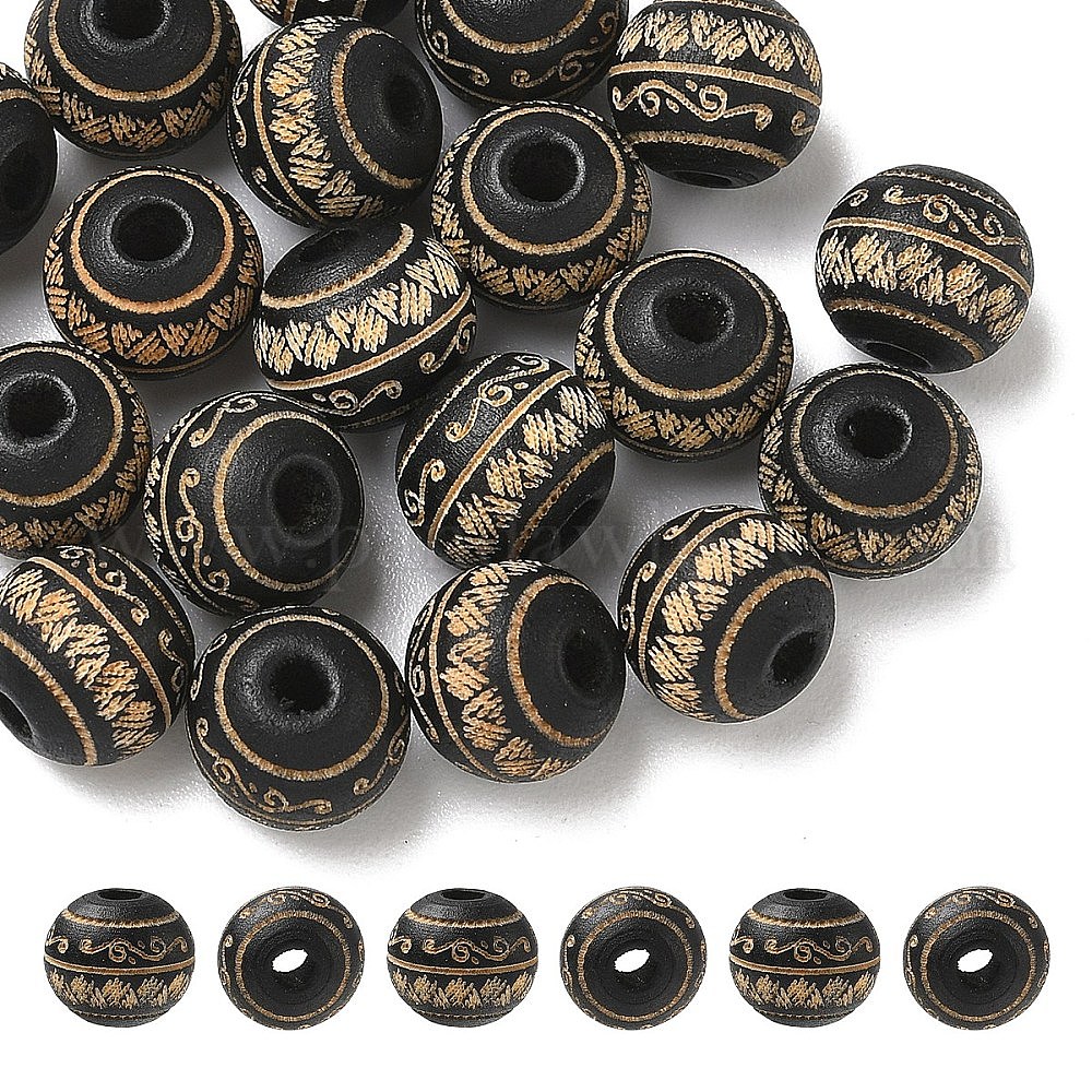 20 шт. Окрашенные бусины из натурального дерева, круглый с лазерной гравировкой в виде листьев