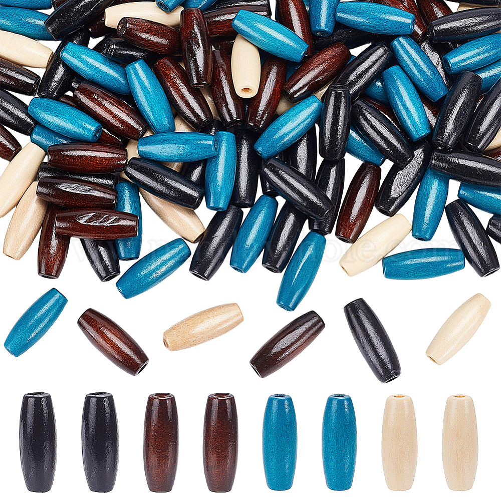 160шт 4 цвета окрашенные бусины из натурального дерева, овальная / продолговато, без свинца