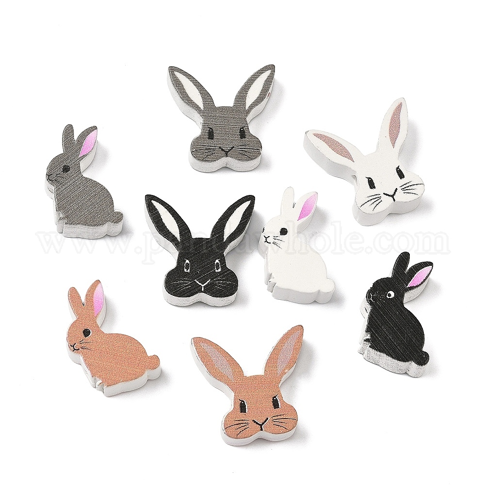 • (52) Непрозрачная лаванда Пасхальные деревянные бусины с рисунком, кролик, разноцветные, 24x25x7.5~8 мм, отверстие : 2.5~3 мм