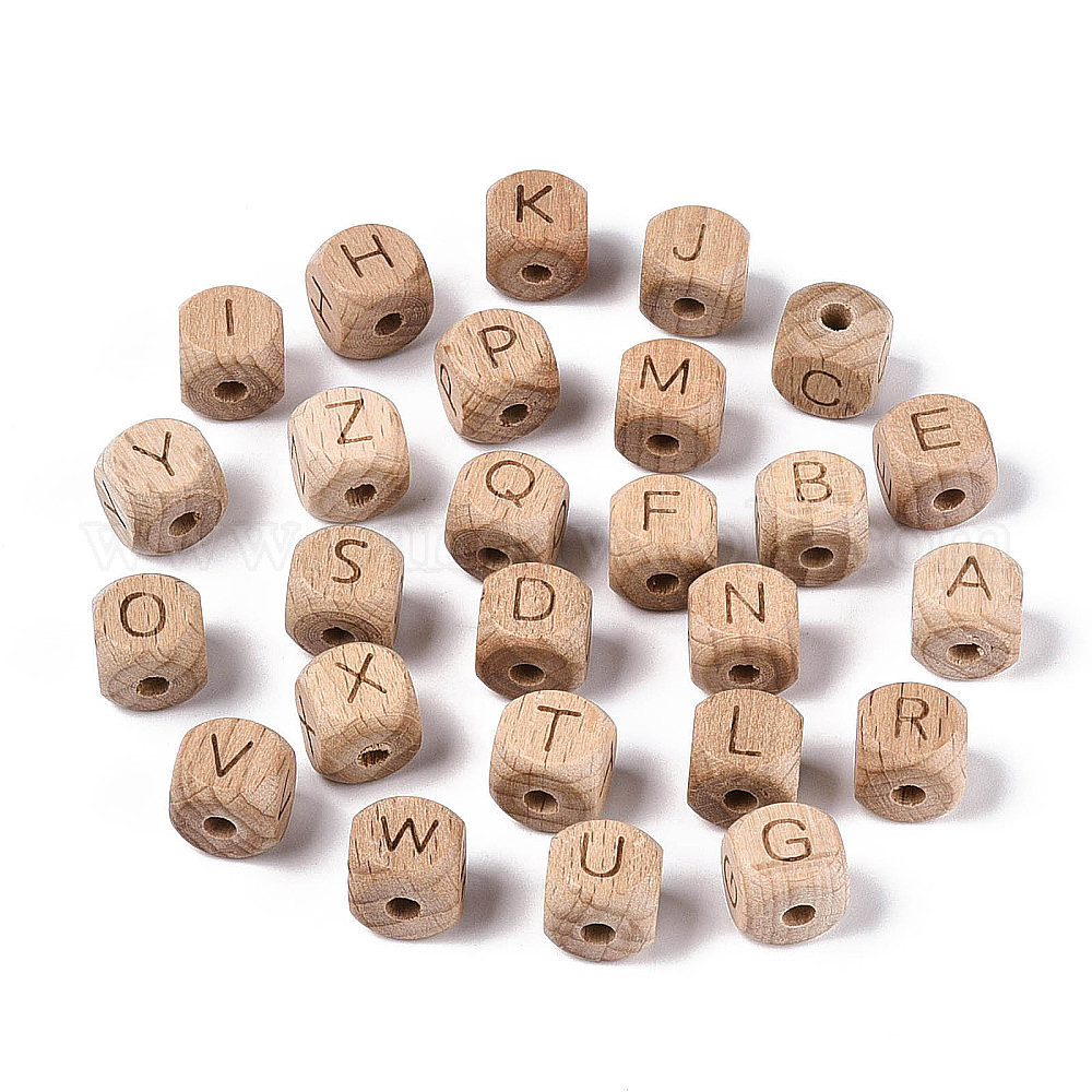 Гравированные бусины из бука, неокрашенными, кубические