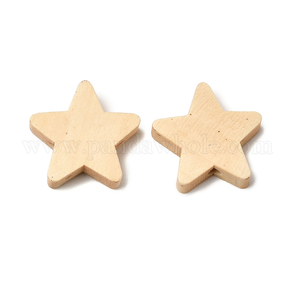 • Бланшированный Миндаль Природных шарики древесины, звезда, бланшированный миндаль, 19x19.5x5 мм, отверстие : 1.6 мм
