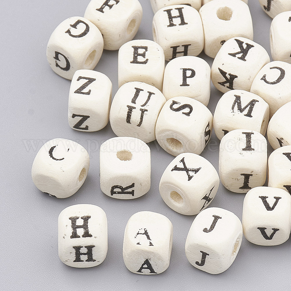 Природных шарики древесины, горизонтальное отверстие, куб с письмом, кремово-белые