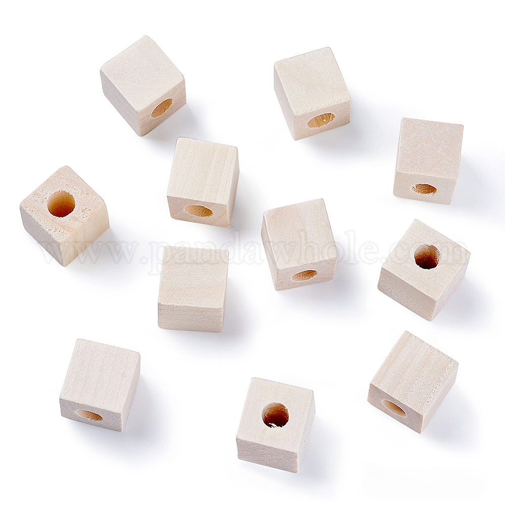 Незаконченные деревянные бусы, натуральные деревянные бусы, без свинца, кубические, бусины с большим отверстием