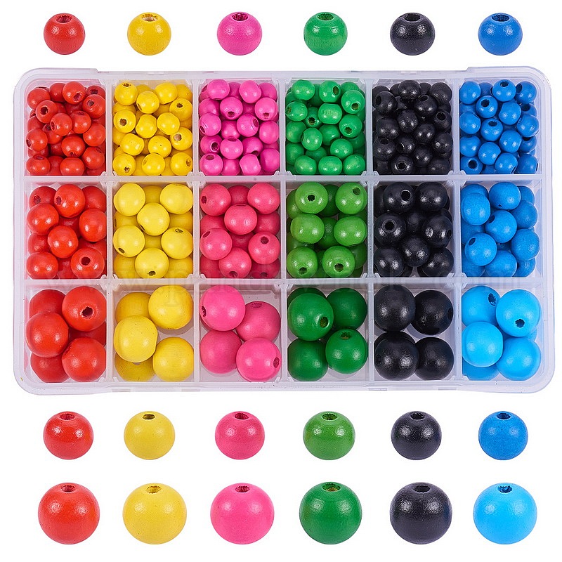 Окрашенные деревянные бусины, круглые