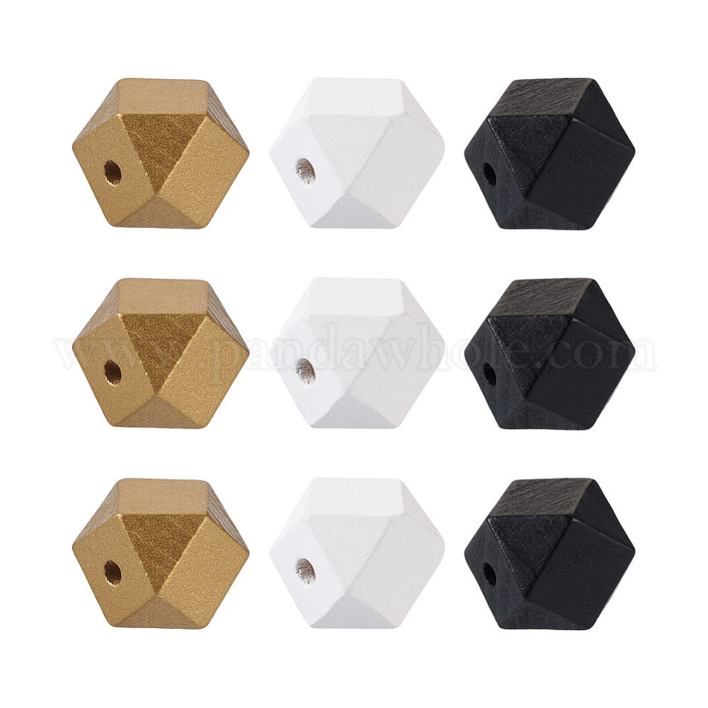 60 шт. 3 цветные бусины из натурального дерева, окрашенные аэрозольной краской, многоугольник