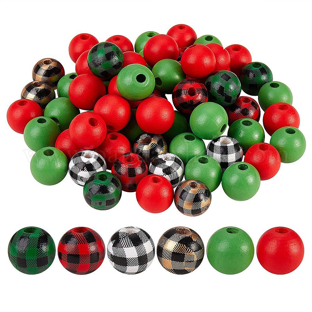 круглые бусины из натурального дерева с рисунком тартан: 5/8 дюйм (16 мм) в диаметре, 4 цветов, 10 шт / цвет, 40 шт;