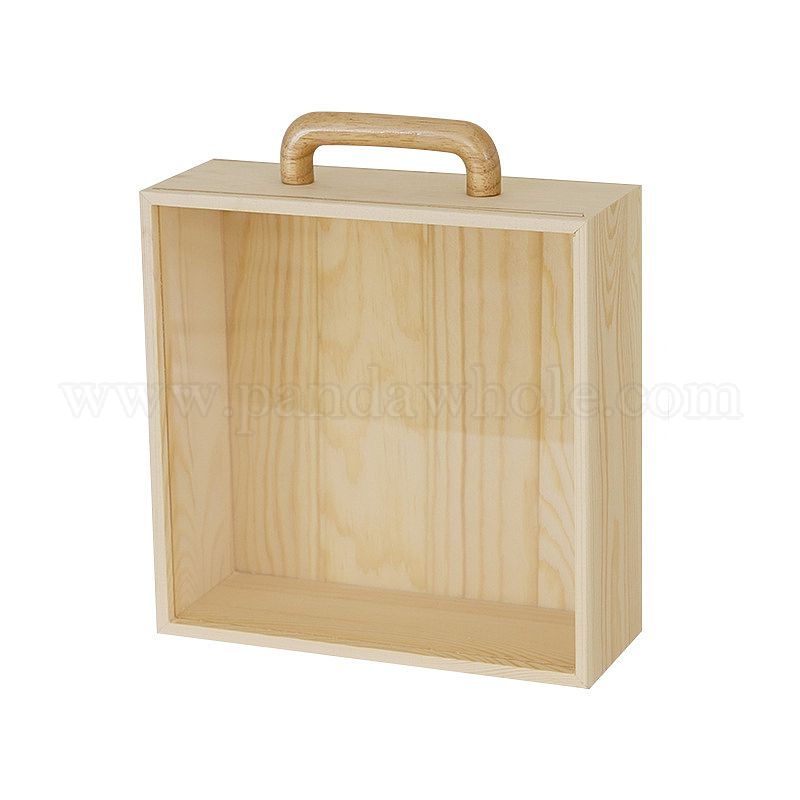 Деревянные ящики для хранения, с пластиковой прозрачной крышкой и деревянной ручкой, квадратный
