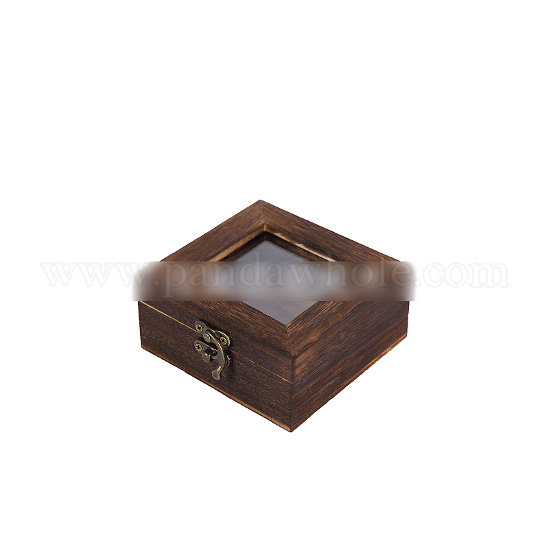 • Седло Коричневый Деревянные ящики для хранения, с откидной крышкой из прозрачного стекла и железными застежками, квадратный, седло коричневый, 10x10x4.5 см