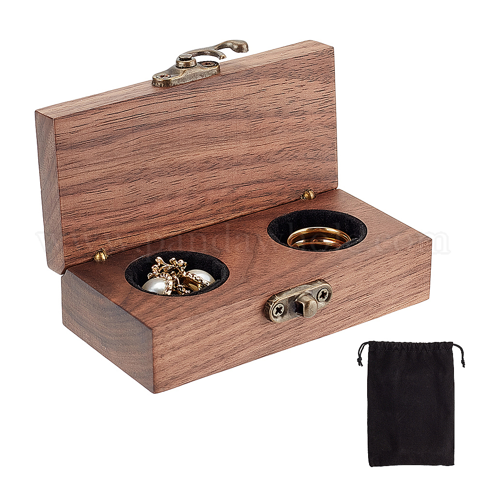 2-ячейковые прямоугольные деревянные коробки для демонстрации колец, держатель-органайзер для колец с губкой внутри, с бархатной сумкой