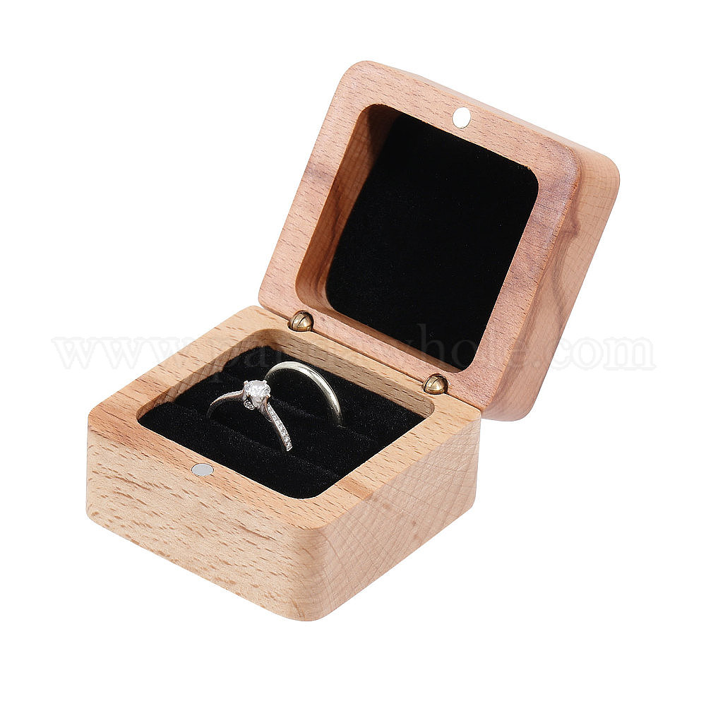 Деревянный магнитный подарочный футляр для хранения ювелирных изделий, бархатом внутри, квадратный