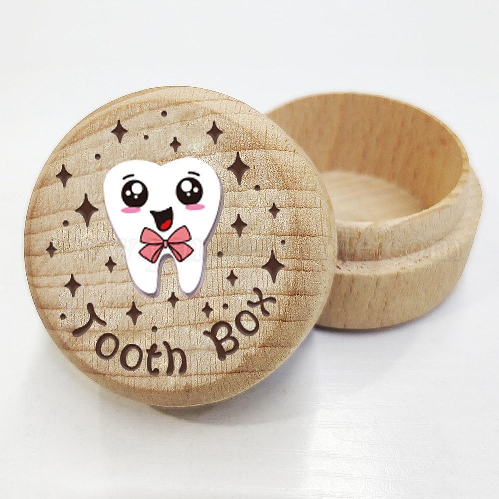 Круглая деревянная бук 3d гравированная моя первая шкатулка для завитков/зубов, с акриловым кабошон, для детского душа, дня рождения